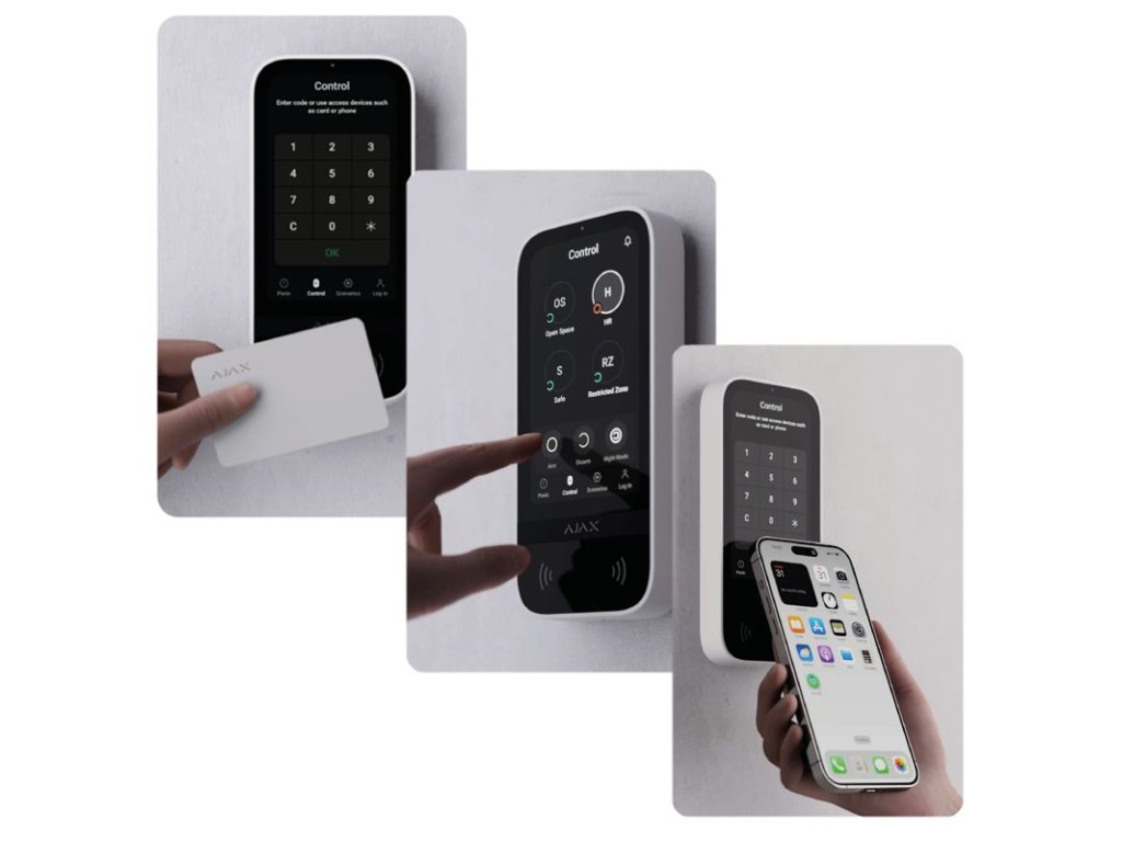 Klávesnice KeyPad TouchScreen zdědila rozhraní aplikací Ajax pro chytré telefony a poskytuje tak snadné a známé ovládání systému. Pětipalcová dotyková obrazovka umožňuje rychlý přístup k aktuálnímu režimu zabezpečení jakékoli skupiny. Aktivuje se zvednutím ruky v blízkosti a má automatickou regulaci jasu. Klávesnice má zvukovou indikaci a může upozorňovat na alarmy, zpoždění při vstupu/odchodu a otevření dveří při odjištění systému. Hlasitost se nastavuje v aplikacích Ajax. Klávesnice také zobrazuje výsledek kontroly integrity systému a informuje o poruchách při zastřežení.